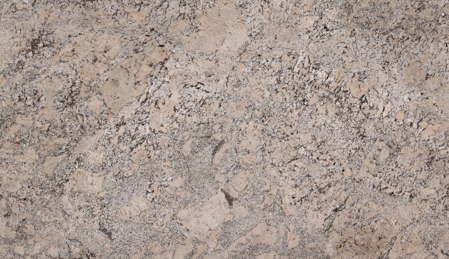 Web Alpine Valley granite countertops are slabs of dazzling natural stone from India with their warm white backgrounds and scattered beige charcoal and black accents. Its a luxurious statement piece that adds elegance and sophistication to any home. Web Alpine Valley Granite from India featuring subtle patterns of grays and whites against a primarily creamy background.
