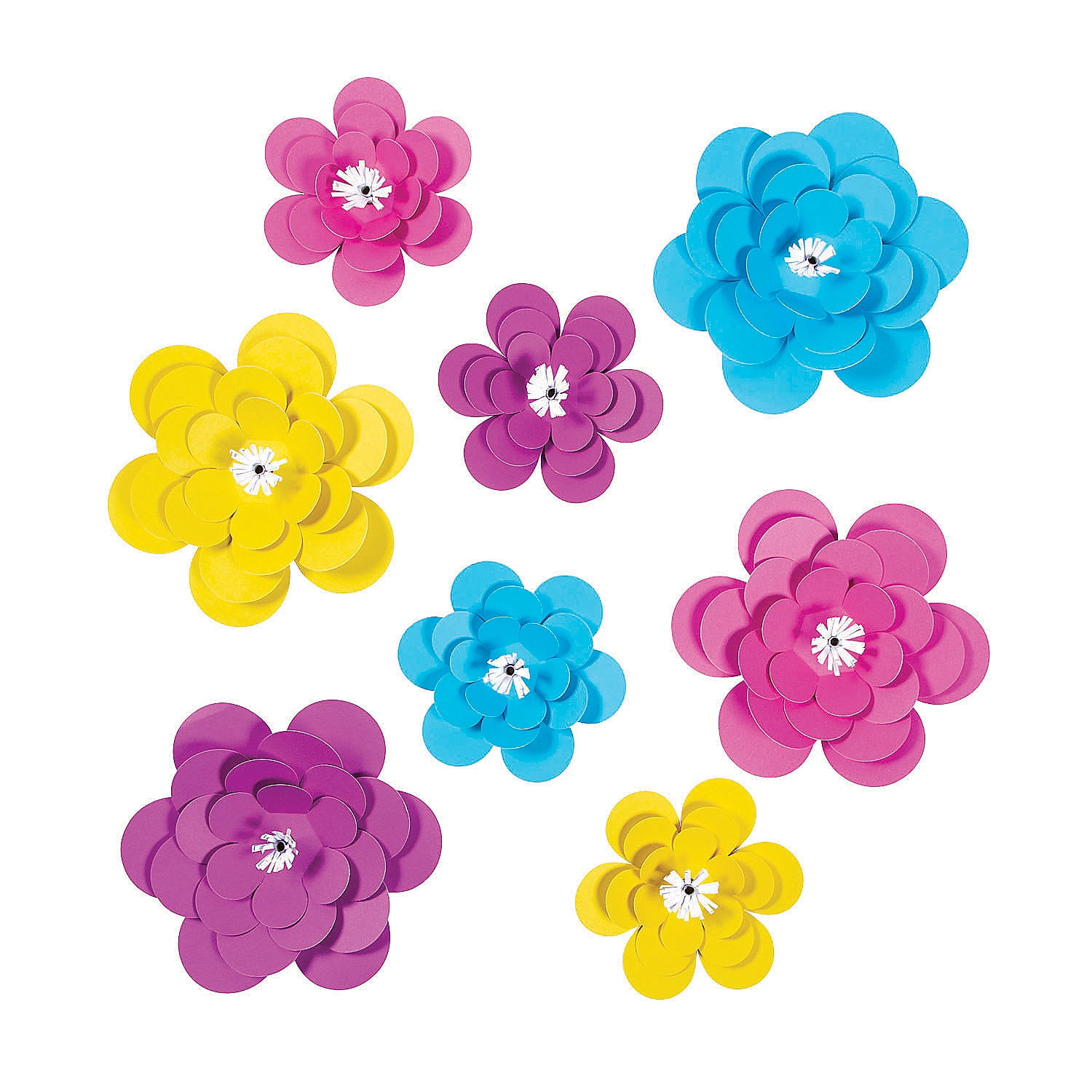 Assorted Bright Paper Flowers Party Decor 12 Pieces Walmart Com